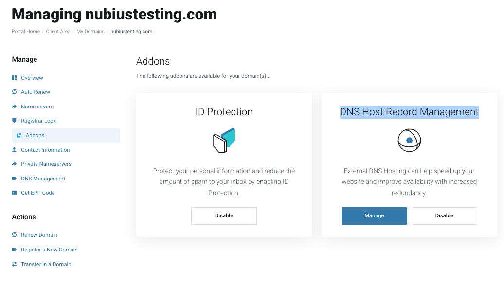 If you require a more sophisticated DNS management solution, consider upgrading to Nubius Basic DNS (Free Plan) from our store.